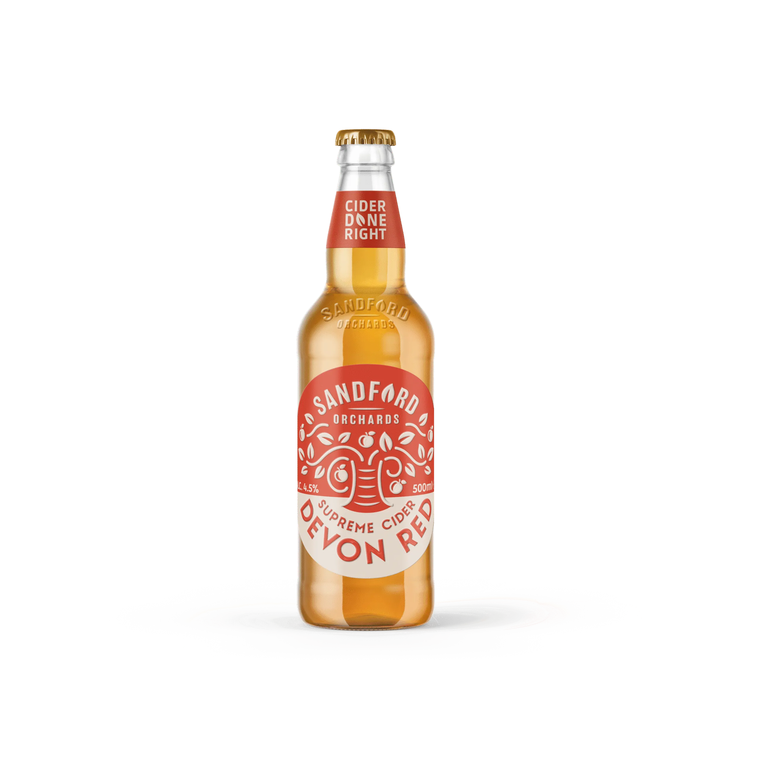 Sandford Devon Red Cider from 450 /per Add to Bag A crisp and fruity supreme cider from Devon. Refreshing, balanced and packed with whole-juice flavour and a welcome hint of sweetness. 500ml ABV 4.5% STOCK LEVEL | 7