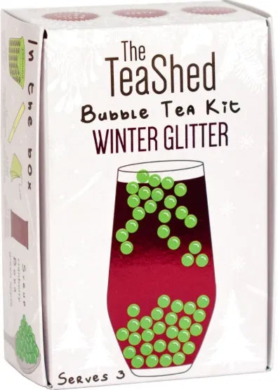 Tea Shed - Winter Glitter Bubble Tea Kit from 1350 /per Add to Bag A three serving festive glitter bubble tea kit containing apple popping boba, glitter cranberry bubble tea syrup, tea bags & chunky paper straws STOCK LEVEL | 2